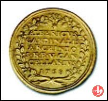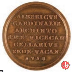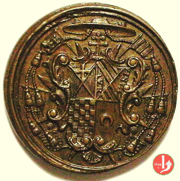 Vice Cancelliere Mons. Archinto -Bo56 Dritto: stemma di Mons. Archinto sormontato da croce e galero a sei nodi Verso: nel campo: ALBERICVS = CARDINALIS = ARCHINTO = • S • R • E • V • CAN = CELLARIVS = 1758 | |
