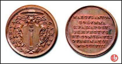 Camerlengo Card. Colonna -Bo54 Dritto: Stemma Colonna sormontato da padiglione, chiavi e galero a sei nodi Verso: ANNO • SALVT • _ • MDCCLVIII • nel campo in cornice: SEDE = VACAN = TE | |