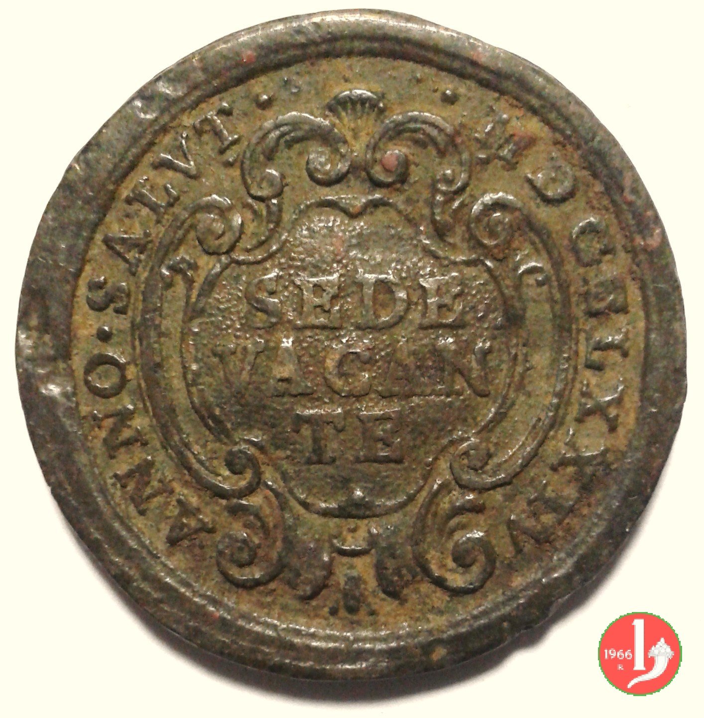 Camerlengo Card. Rezzonico -Bo71 Dritto: Stemma Card. Rezzonico sormontato da padiglione, chiavi e galero Verso: ANNO • SALVT • _ • MDCCLXXIV in cartella: SEDE = VACAN = TE | |