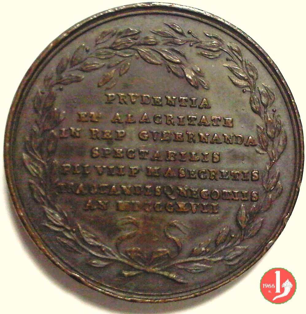 Verso: nel campo, tra rami d'alloro legati in basso da cordoncino: ANNO = SAECVLARI = VI  = MDCCCXXII  = PIO VII  • P • M