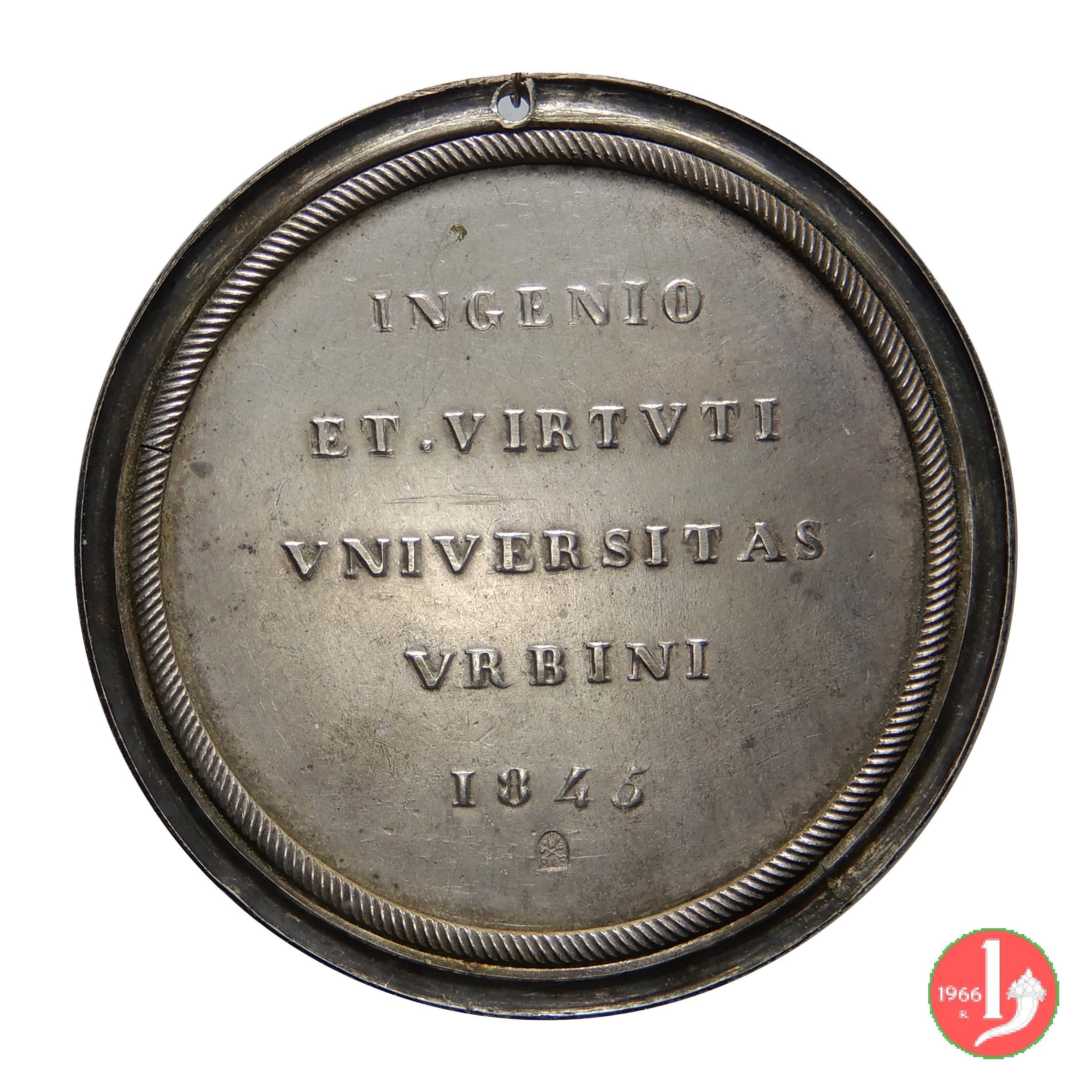Università di Urbino Obverse: GREGORIVS • XVI • _ PONTIFEX MAX • busto a sx con berretto, mozzetta e stola | |