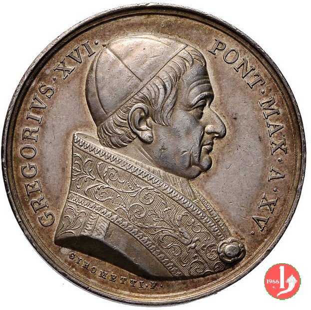 Benemerenti -Bo202 Obverse: GREGORIVS • XVI • _ PONT • MAX • A • XV • busto a sx con berretto, mozzetta e stola sotto: G • GIROMETTI • F • | |