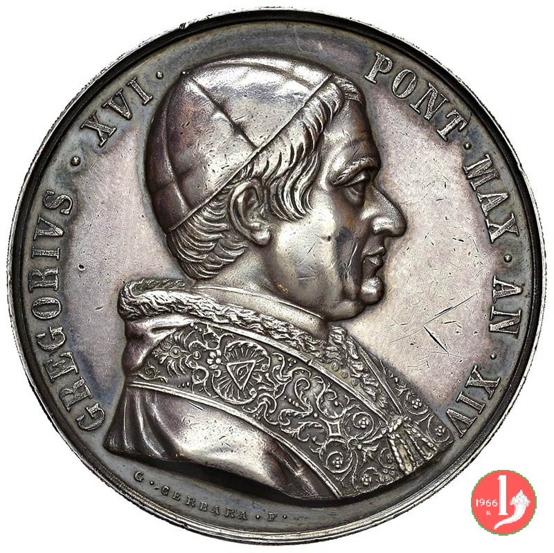 Premio Alunni Università di Roma -Bo193 Obverse: GREGORIVS • XVI • _ PONT • MAX • AN • XIV • busto a dx con berretto, mozzetta e stola sotto: G • CERBARA • F • sotto: L.G | |