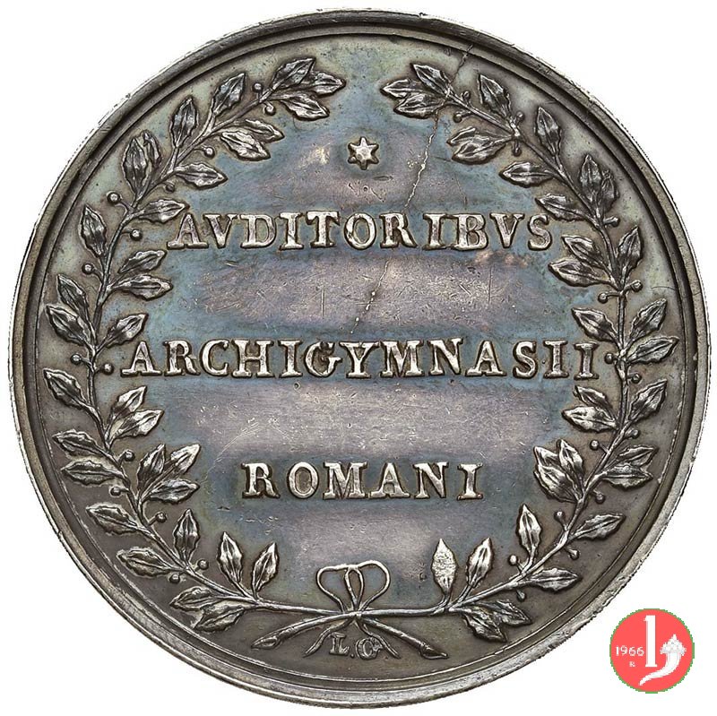 Premio del Collegio Romano -Bo213 Obverse: GREGORIVS • XVI • PONT • MAX • SACRI • PRINCIPATVS • ANNO busto con berretto, mozzetta e stola a sx sotto: G • C • Vista del Collegio Romano con le figure allagoriche della Religione mostra a due geni il fabbricato sede del Collegio in esergo: al centro scudetto raggiante IHS e ai lati: COLL _ ROM | |