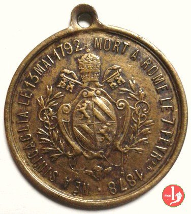 13 MAI 1792 -B11 Obverse: PIVS IX _ PONT. MAXIM. busto a sx con berretto, mozzetta e stola sotto: fregio triregno = 13 MAI 1792 = 16 JULI 1846 = 18 JULI 1870 = 7 FEBRUAR 1878 = chiavi decussate | |