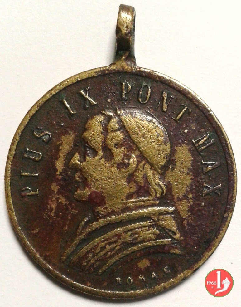 A ricordo del Pontificato 50mm Obverse: PIVS IX _ PONT. MAX busto a sx con berretto, mozzetta d'ermellino e stola sotto: 1846 - 1878 | |