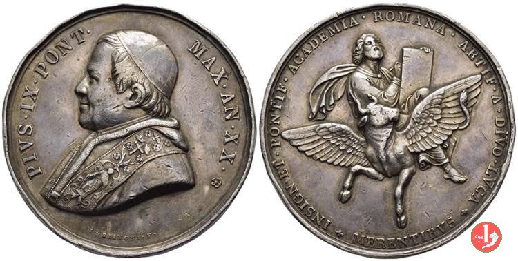 Premio Accademici Università di Roma -B2 Dritto: PIVS • IX • PONT • _ MAX • AN • XXI • busto con berretto, mozzetta e stola a sx sotto: I • BIANCHI • S • | |