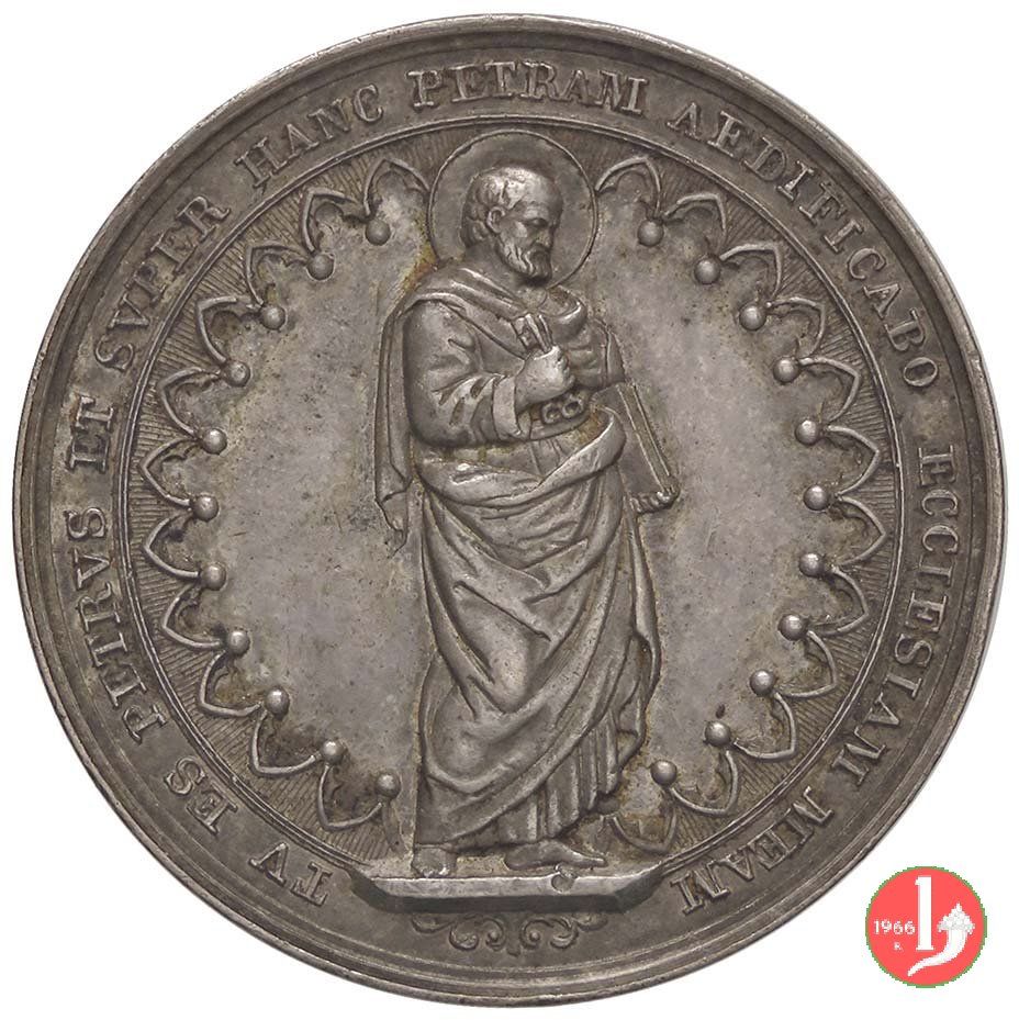 S. Pietro Apostolo Dritto: PIUS IX PONT. MAX. OPTIM. busto a sx con berretto, mozzetta d'ermellino e stola San Pietro nimbato, in piedi, di fronte, regge chiavi |