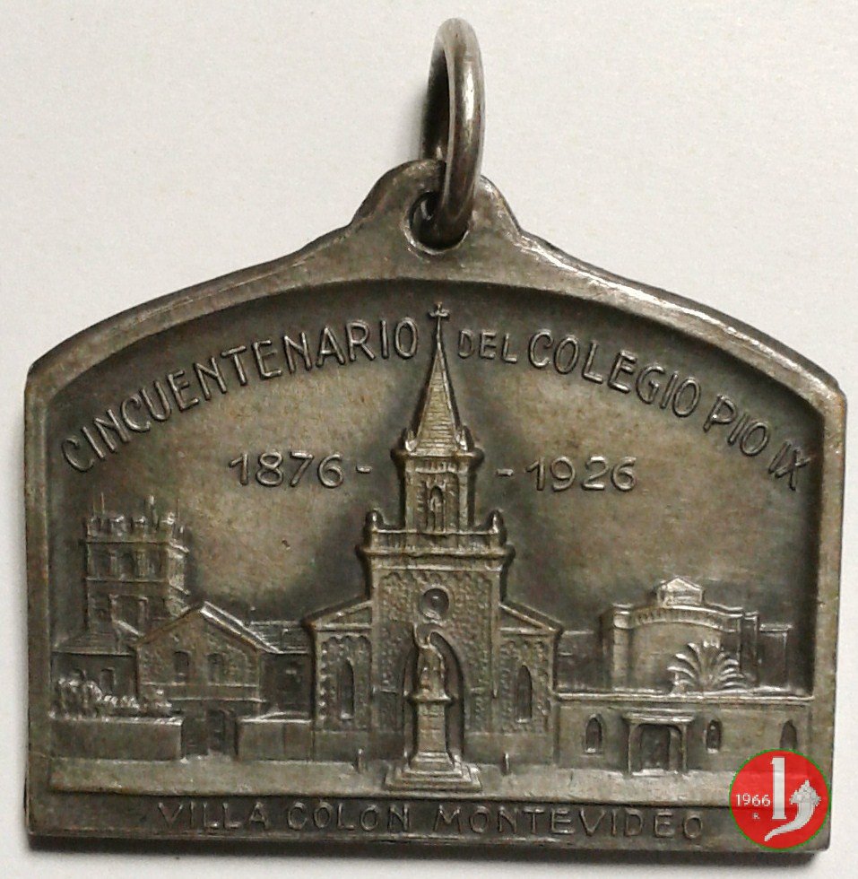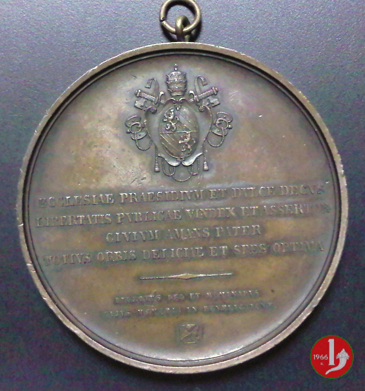 Verso: PERPETUO = RICORDO ALL'ITALIA = E AI POPOLI TUTTI = DEL PAPA = PIU = MITE DEVOTO BENEFICO = triregno e chiavi decussate