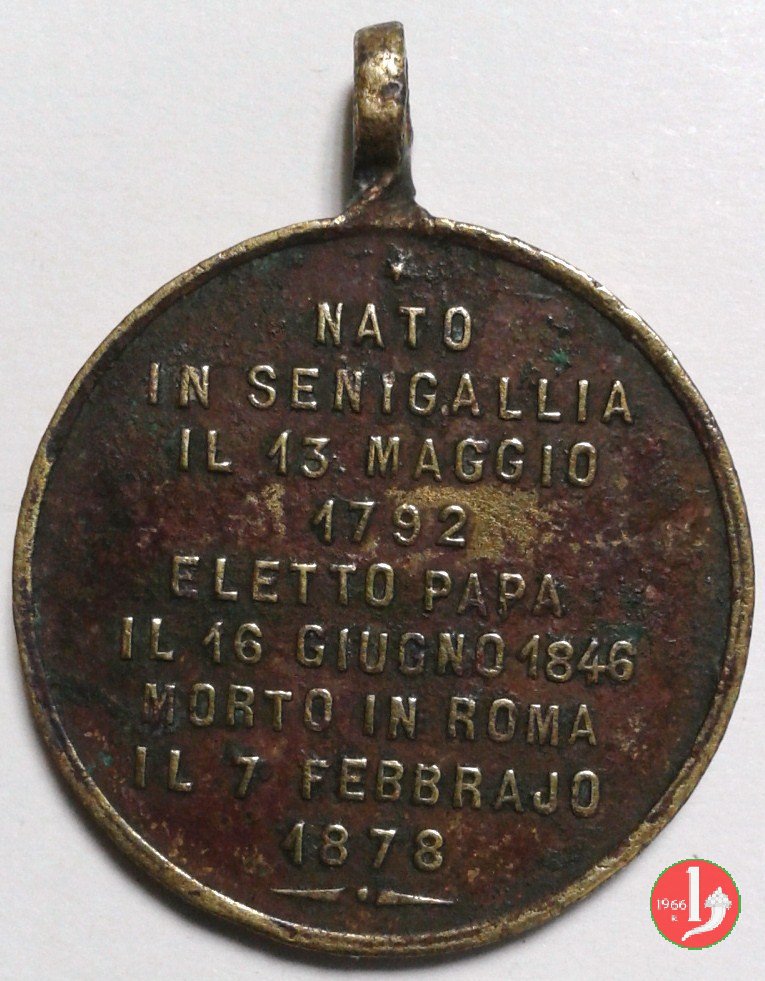 sotto: PIO IX. P. M. = NATO GIO. M. DEI CONTI MASTAI FERRETTI DI SINIGALIA = NEL 1792. = *