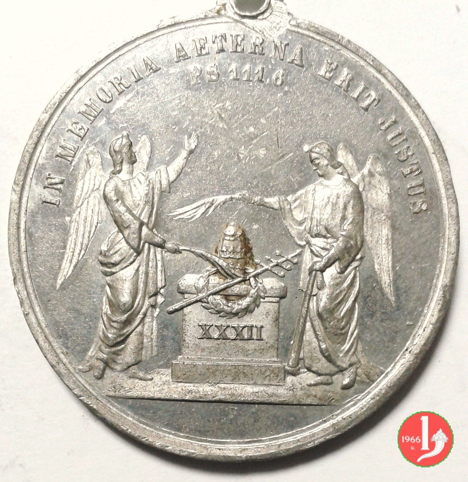entro cerchio perlinato: PONTIFEX = MAXIMUS = ANN. = 1846-1878 = - = NE = LE 13 MAI 1792 = MORT = LE VII FEVRIER 1878