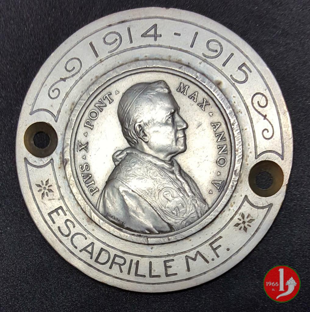 Dritto: sull'anello esterno tra fregi: 1914 - 1915 = * ESCADRILLE M. F. *