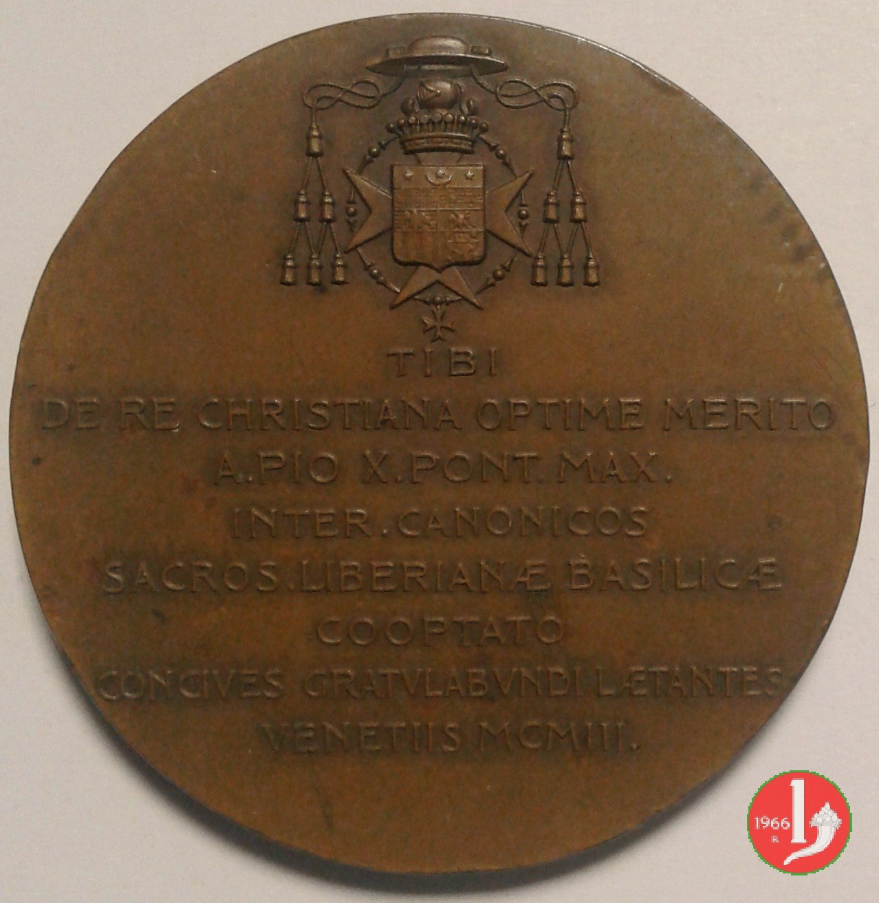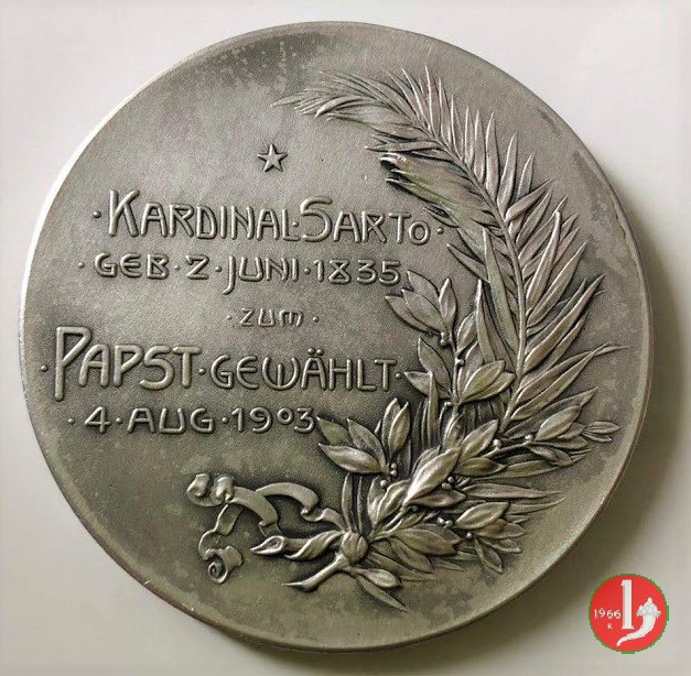 Verso: sulla dx rami di palma e d'alloro, nel campo: * = • KARDINAL • SARTO • = GEB • 2 • JUNI • 1835 = ZUM • = PAPST • GEWAHLT • = • 4 AUG • 1903