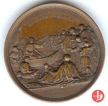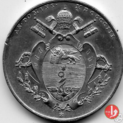 Verso: in alto: Stemma Papale su chiavi decussate e rami d'alloro