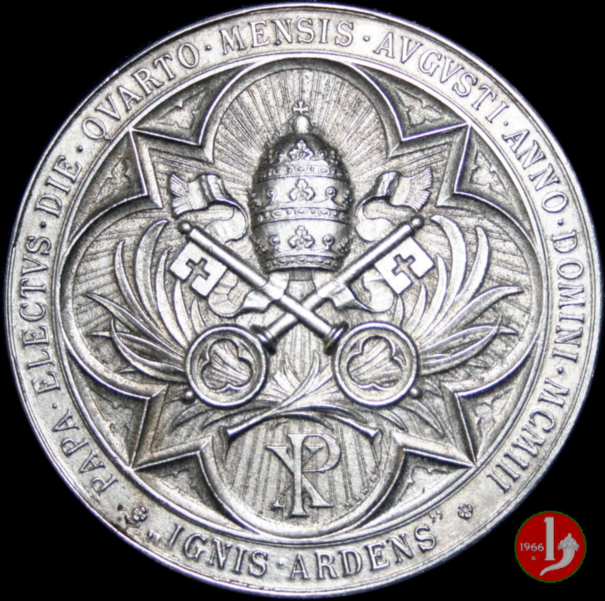 Verso: PAPA • ELECTVS • DIE • QVARTO • MESIS • AVGVSTI • ANNO • MCMIII • << IGNIS ARDENS >>