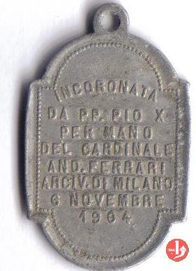 Verso: AVCTORITATE • PII • X • P • M • = DOMINICVS • FERRATA • S • R • E • CARD • = SIMVLACRO • PORTENTIS • INSIGNI = AVGVSTO • SACRORVM • RITV = CORONAM • IMPOSVIT • DEDICAVIT = INIBVS • SEPTEM • A • MCMIII