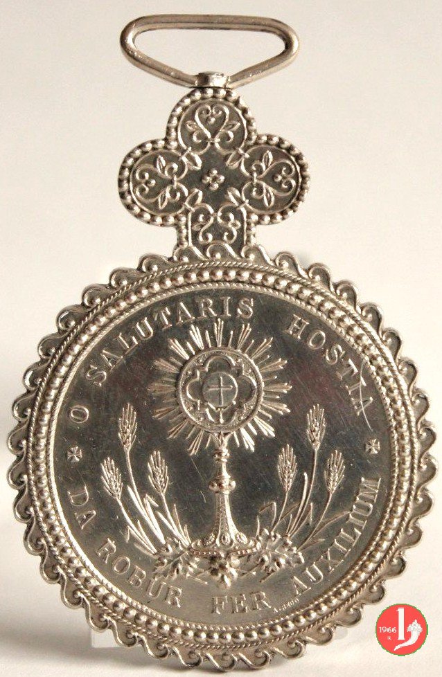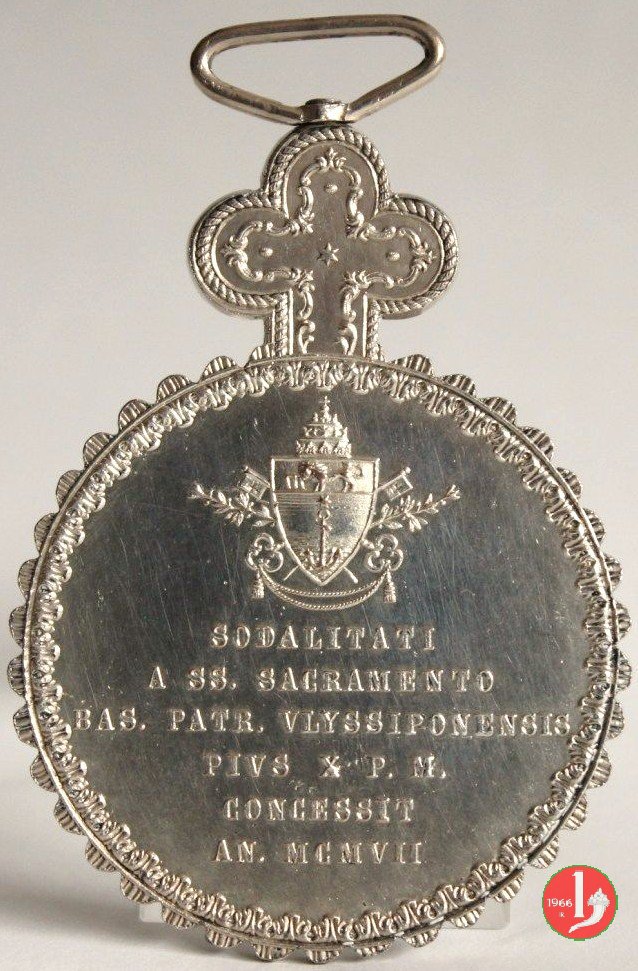 sotto: SODALITATI = A SS. SACRAMENTO = BAS. PATR. ULYSSIPONENSIS = PIUS X P. M. = CONCESSIT = AN. MCMVII