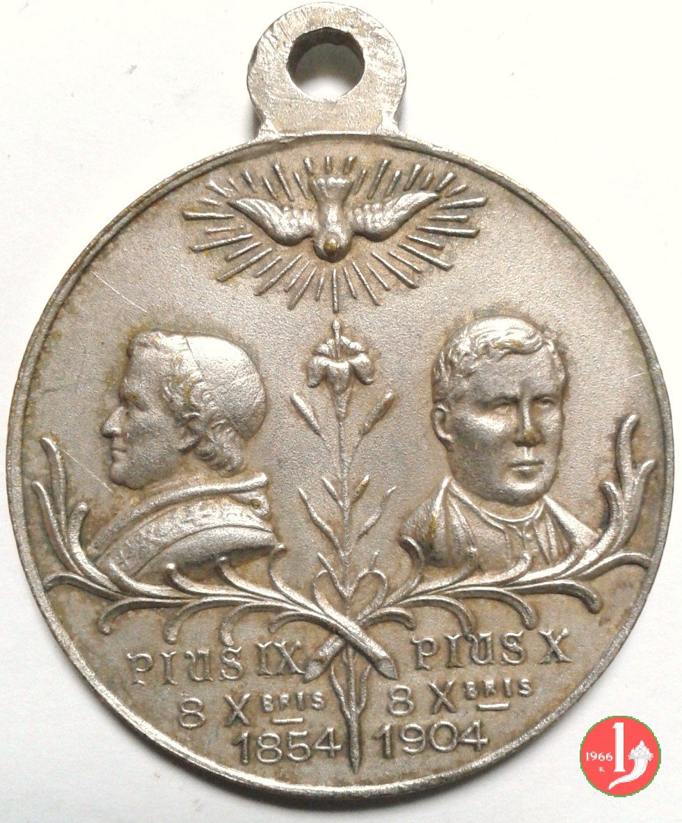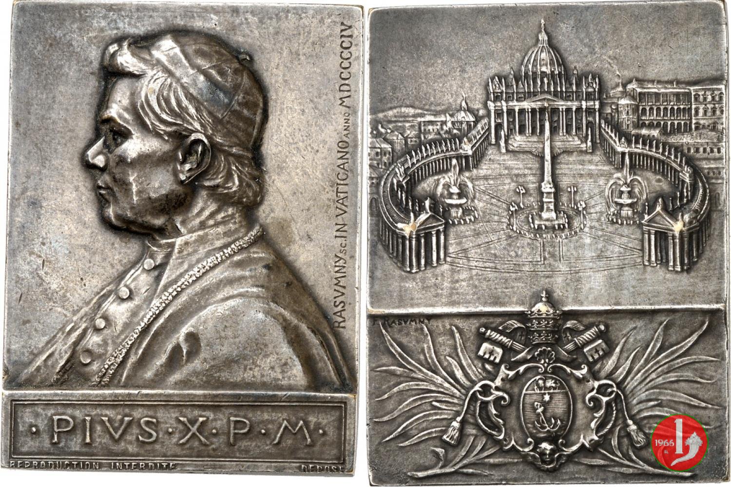 nel campo : MDCCCLIV = MCMIV stemmi affiancati di Pio X e Pio IX, sotto la Basilica di S. Pietro