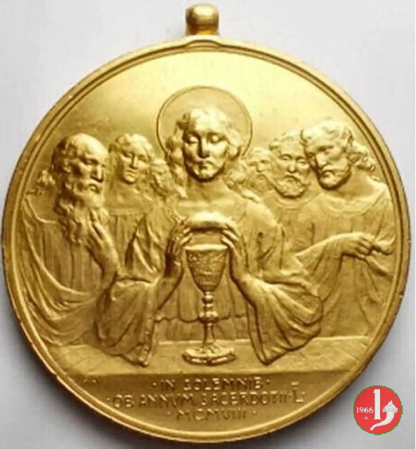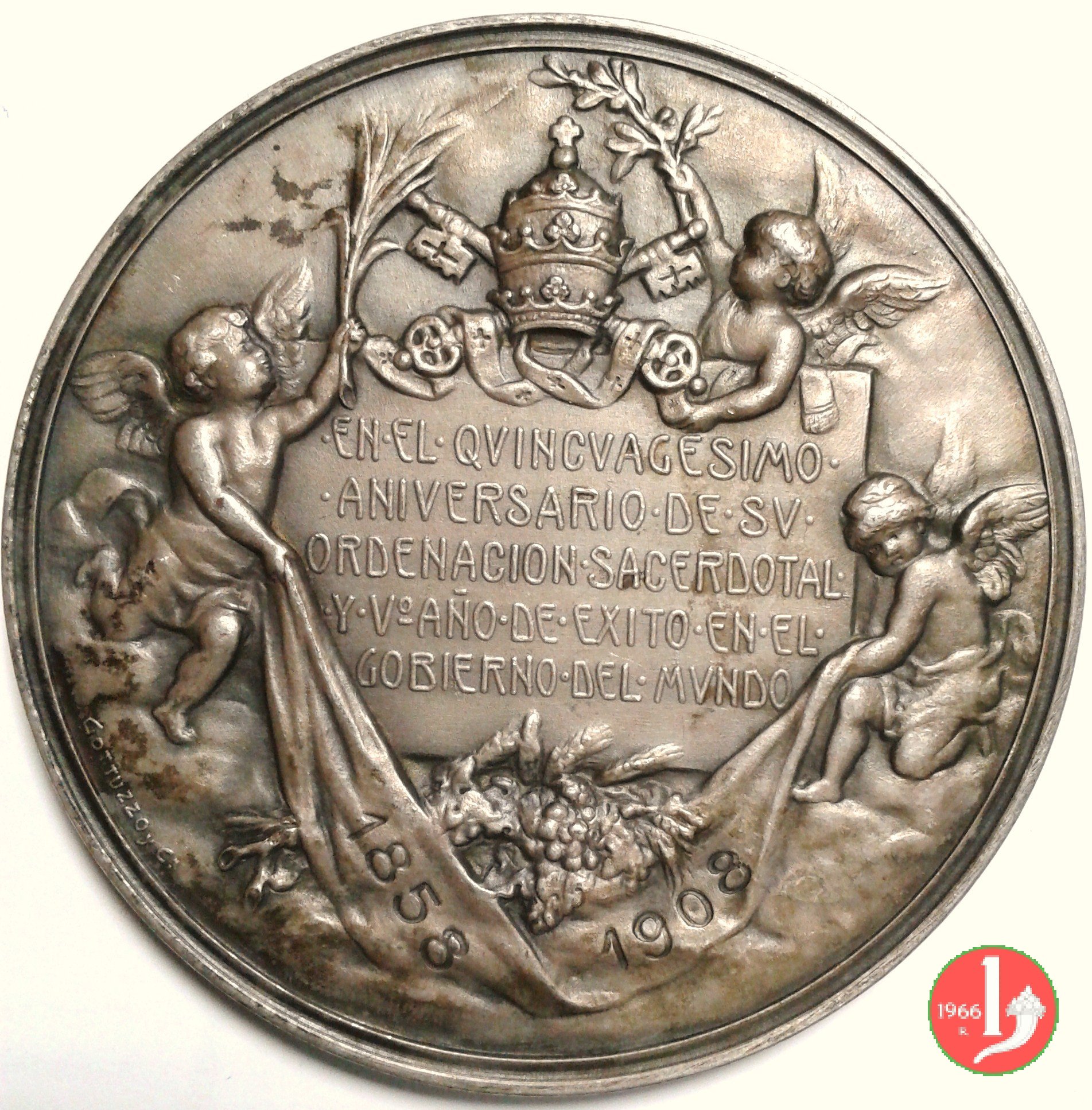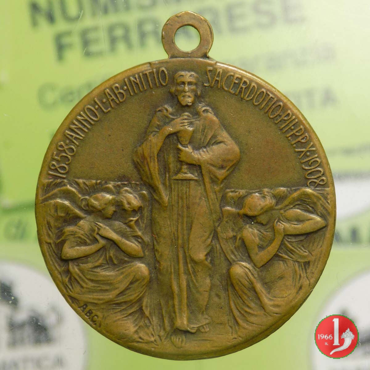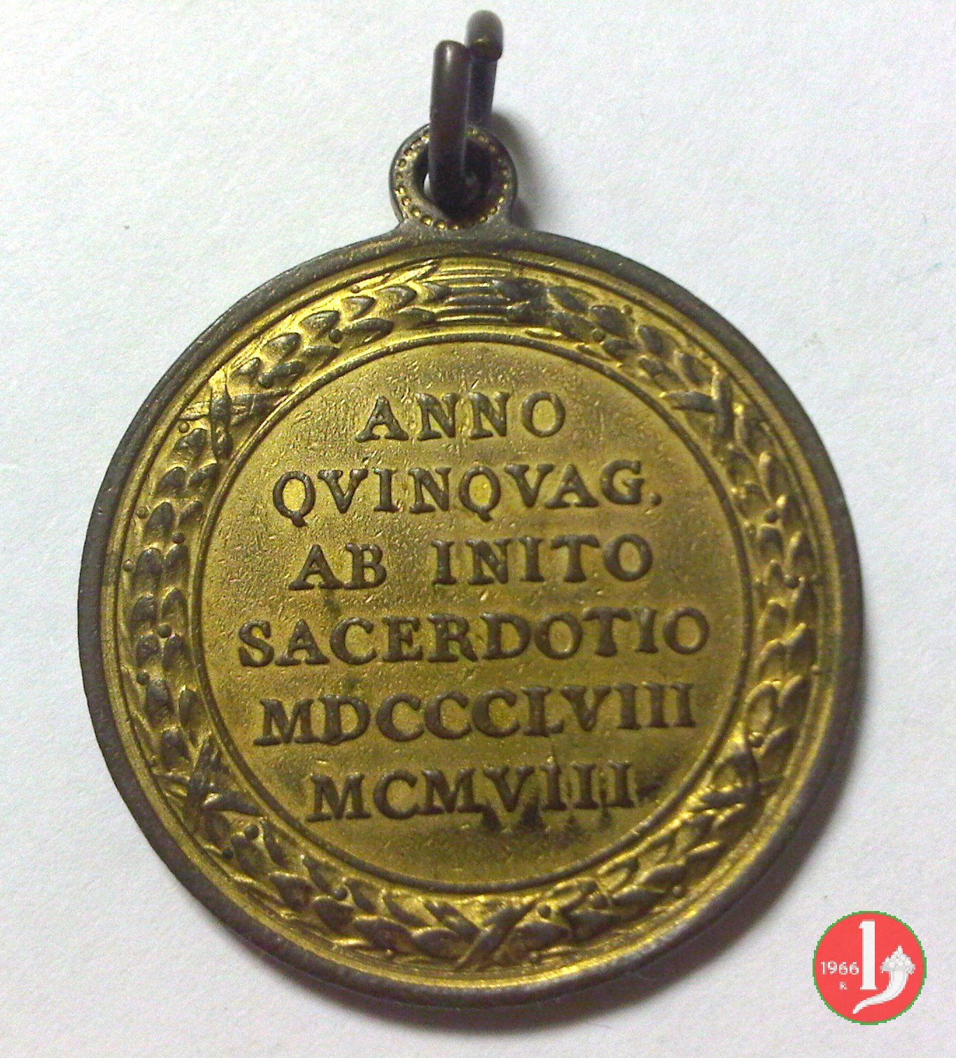 Verso: in ghirlanda di alloro: ANNO = QVINQVAG. = AB INTO = SACERDOTIO = MDCCCLVIII = MCMVIII