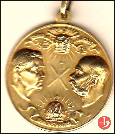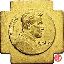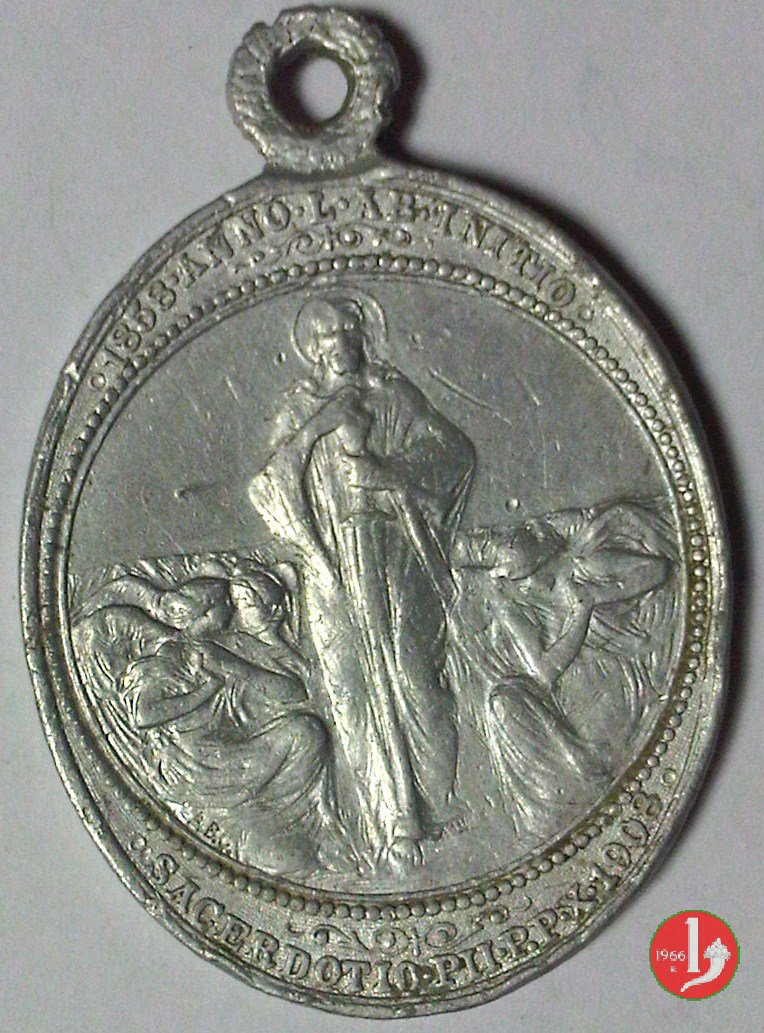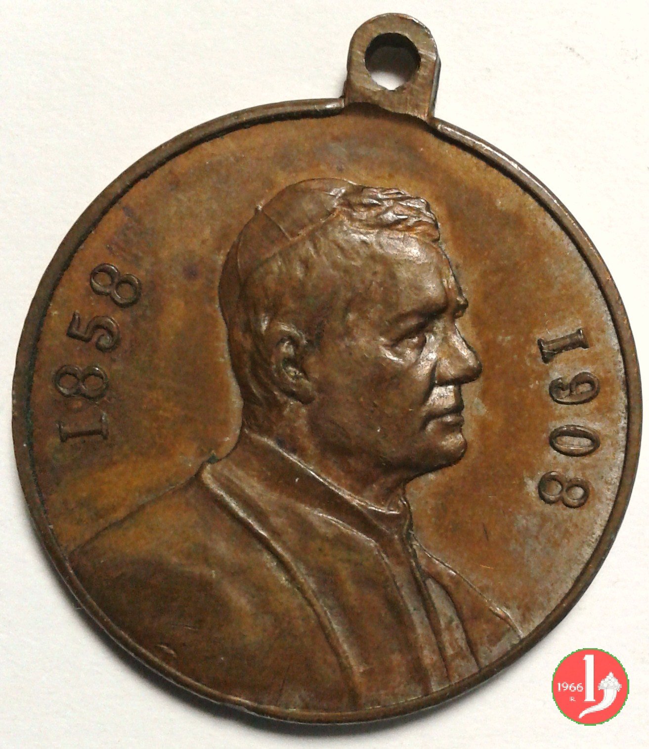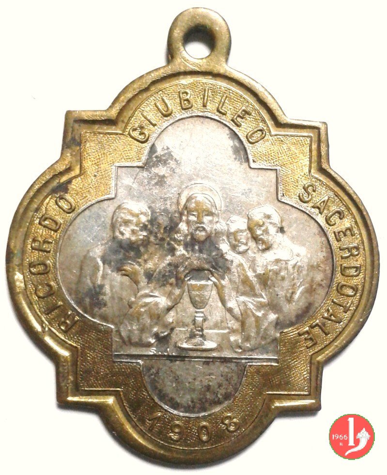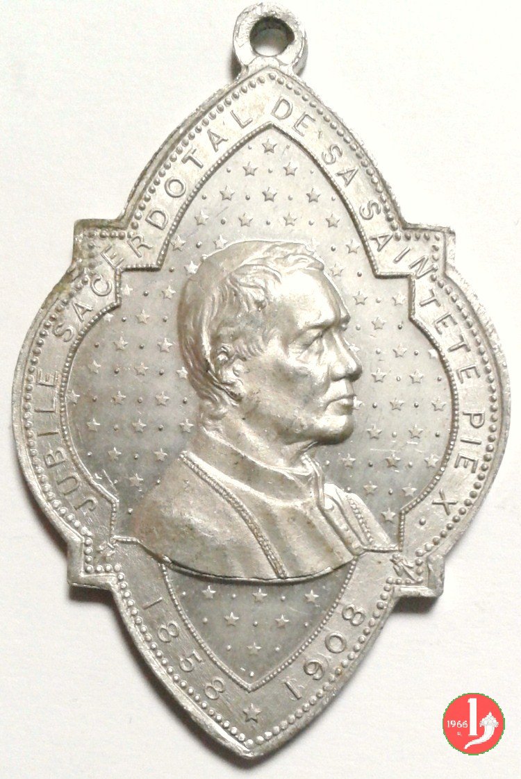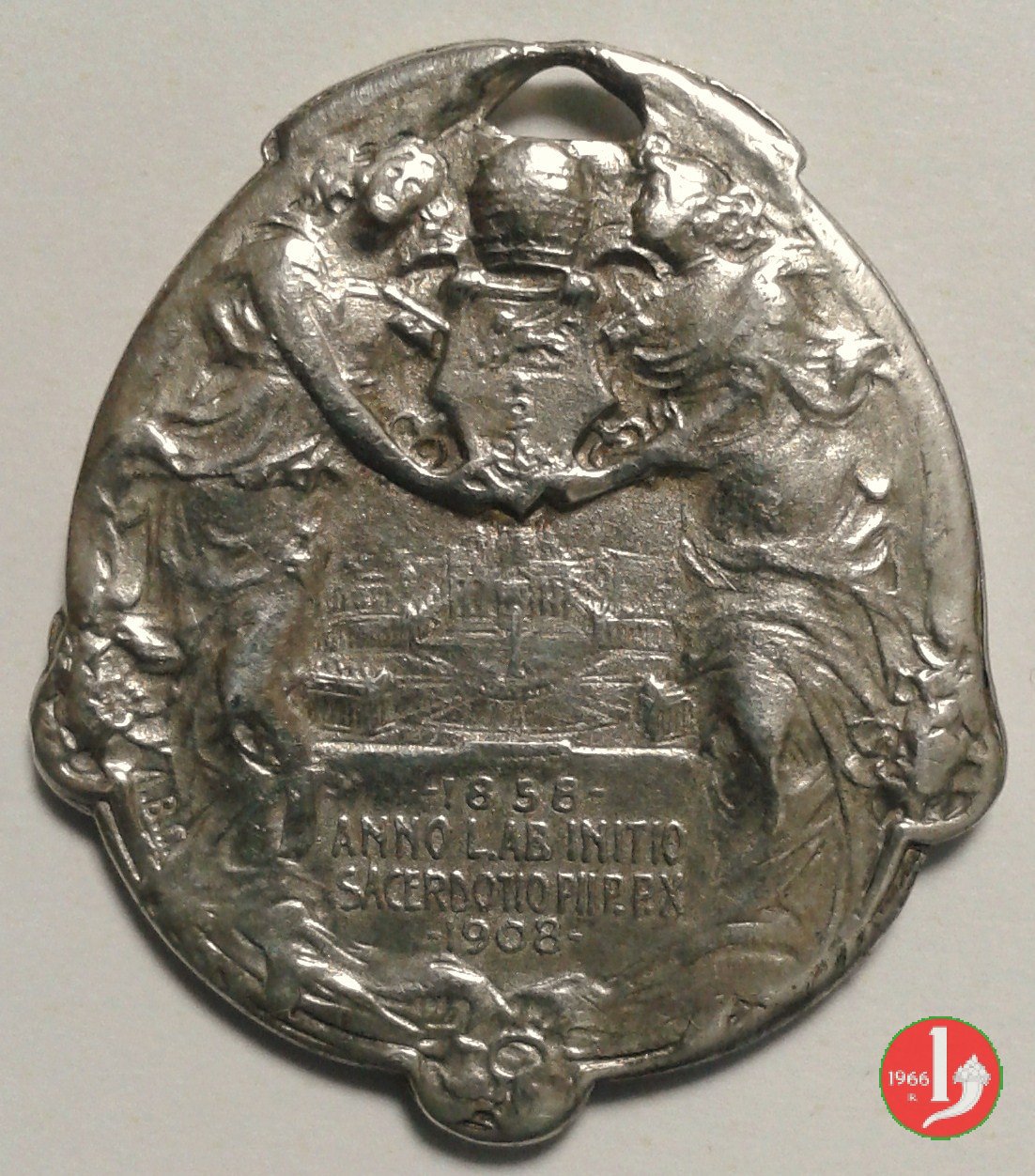 Verso: in ghirlanda di alloro: ANNO = QVINQVAG. = AB INTO = SACERDOTIO = MDCCCLVIII = MCMVIII