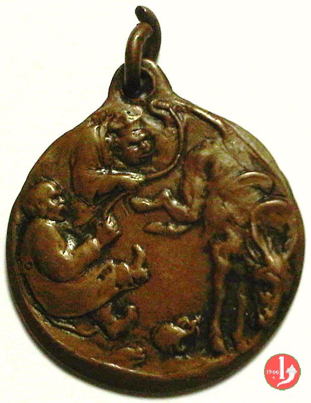 Verso: Allegoria della Chiesa seduta di fronte attorno fanciulli