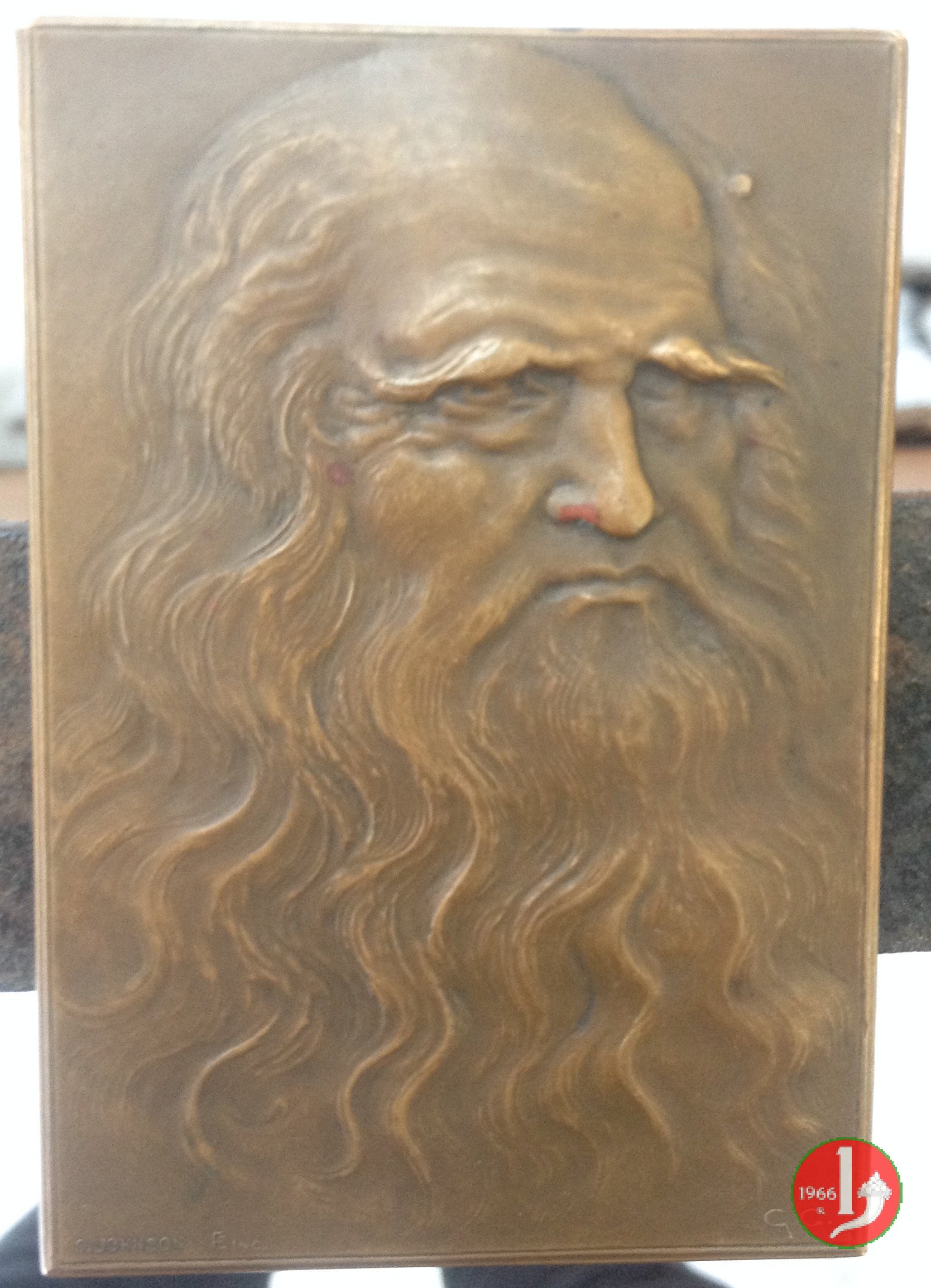 Busto nimbato di fronte con chiavi
