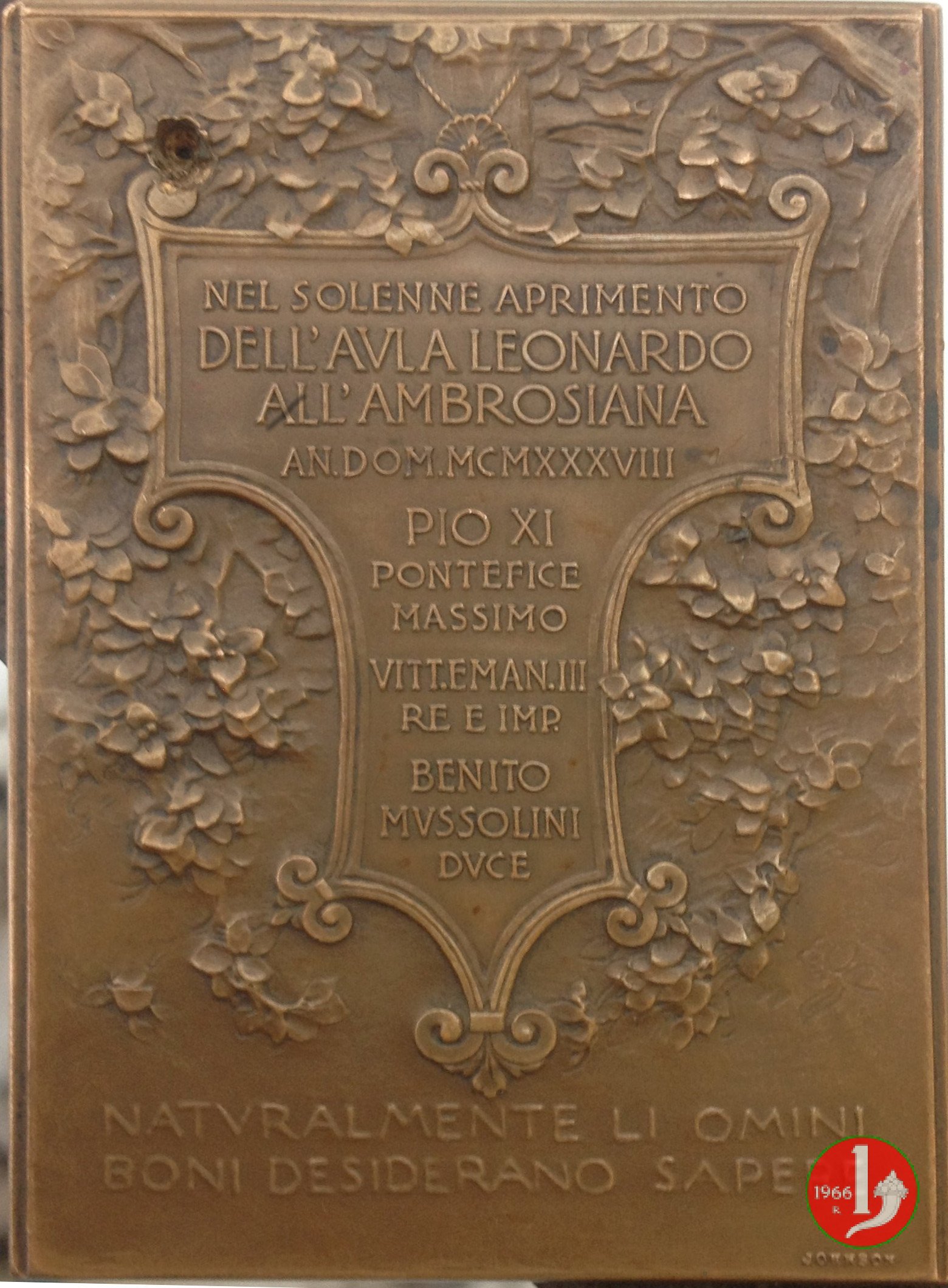 sotto lo stemma: MDXXXIII-MCMXXXIII = ANNO CCCC = A CONGR. REGG. S. PAVLI = FVNDATA = HVJVS MISSIONARIAE DOMVS = PRIMO