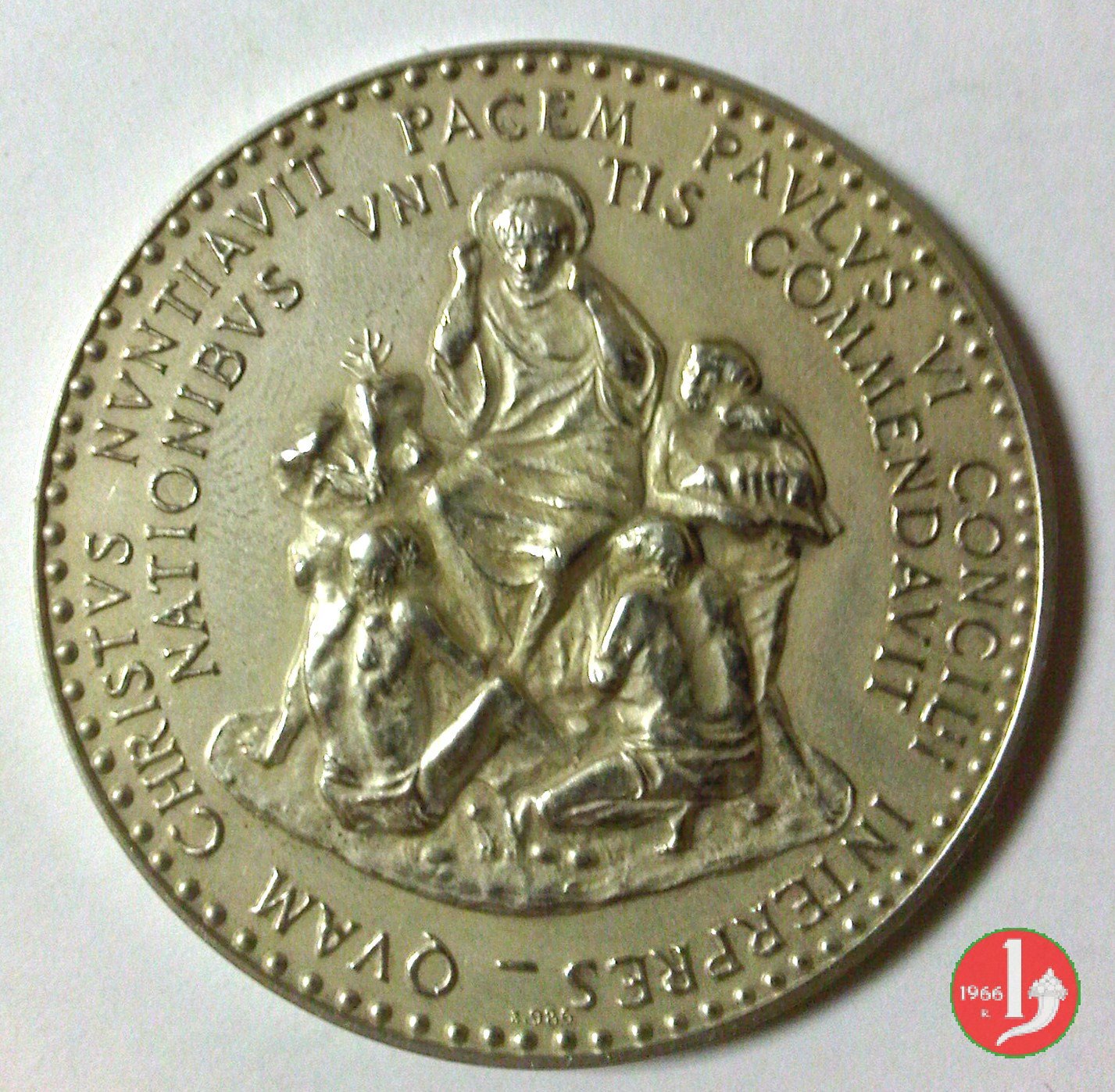 Chiusura Concilio Ecumenico Vaticano II -Serie Concilii -MM598 Obverse: PAVLVS • VI • PONT _ I _ FIFEX • MAXIMVS = CONCILIVM • OECVMEN _ I _ CVM • VATICANVM • II busto a sx con mitra, fanone e pallio nel campo, a dx: monogramma Ff Cristo raggiante su nube irraggia il Papa e i Padri Conciliari riuniti, al centro su tavolino libro aperto iscritto: EVAN = GELIA in basso a sx: GIAMPAOLI |