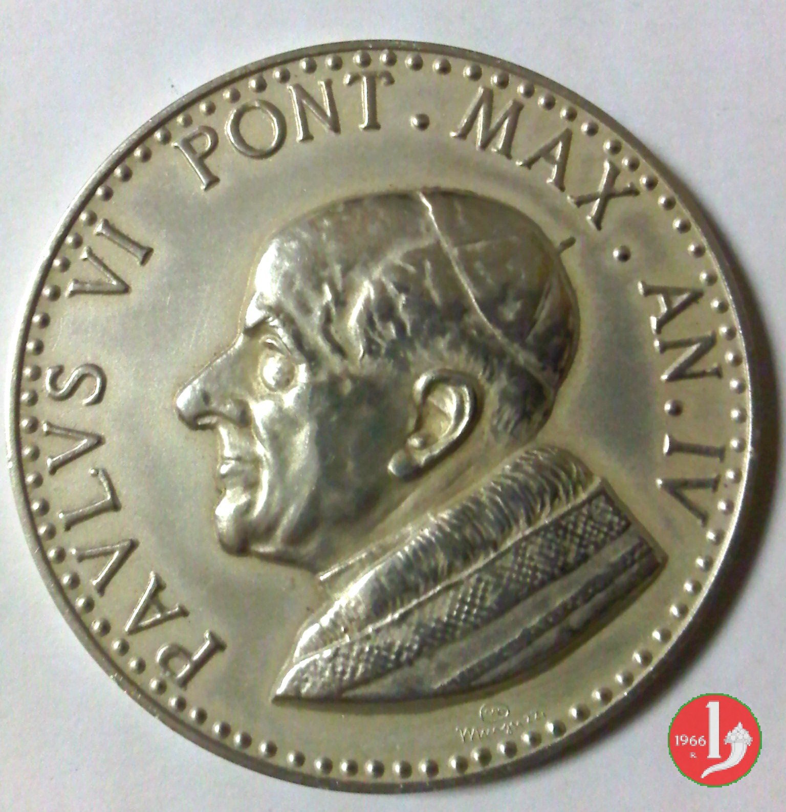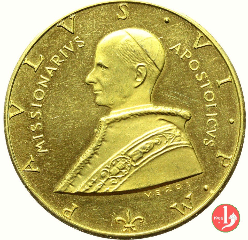 Giubileo Straordinario 1966 -MM191 Obverse: PAVLVS VI • PONT • _ MAXIMVS busto a sx con berretto, mozzetta d'ermellino e stola nel campo, in alto: ANNO _ JUBI = LAEI in basso: Croce su libro aperto recante MCMLXVI |