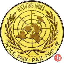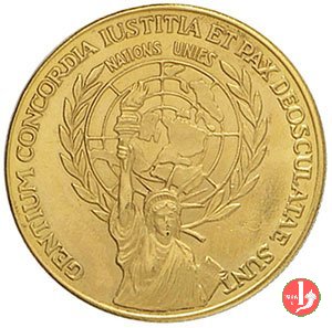Visita all'ONU -Stemma ONU 04-10-1965 Obverse: Busto di 3/4 a dx con berretto ed abito talare sul Palazzo di Vetro delle Nazioni Unite Reverse: PAULUS VI P.M. PACIUS NUNTIUS = • D. IV OCT. A. MCMLXV • entro cerchio continuo: Stemma dell' ONU | |