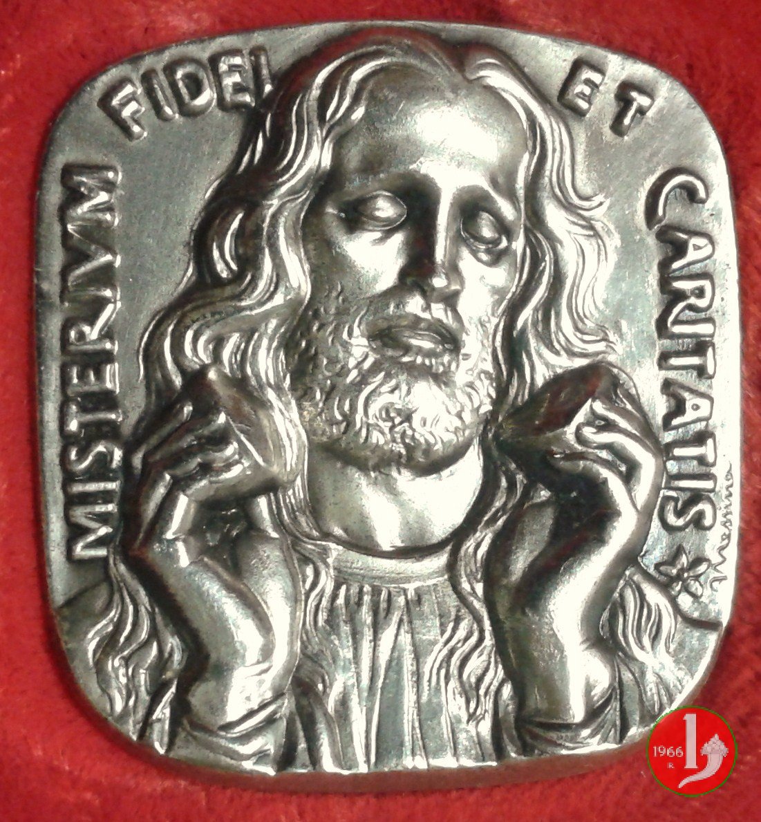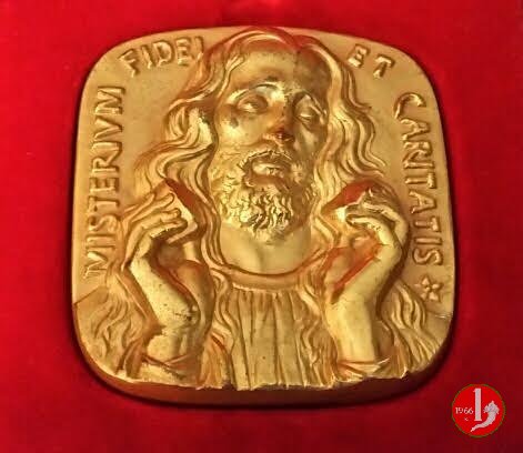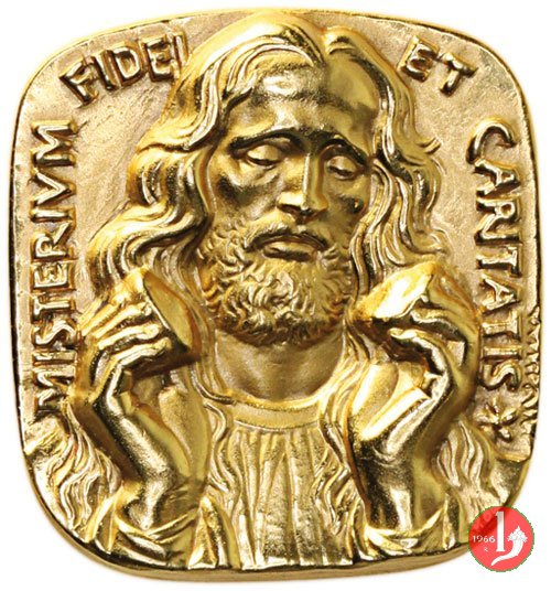 Viaggio a Bogotà - Placca Uniface Obverse: MISTERIVM FIDEI _ ET CARITATIS Busto di Gesú di fronte mentre spezza il Pane in basso a dx: MESSINA |
