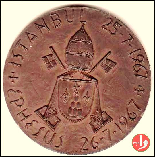 Viaggio in Turchia 25-07-1967 -MM232 Obverse: PAVLVS _ VI P. M. busto a sx con zucchetto, abito talare e Croce pettorale sotto a dx: VEROI in esergo: chiavi decussate legate da nastro Due Angeli affiancati, in piedi, di fronte, nimbati e ad ali spiegate, reggono sfere e insegne contenenti ATIOC _ SCS |