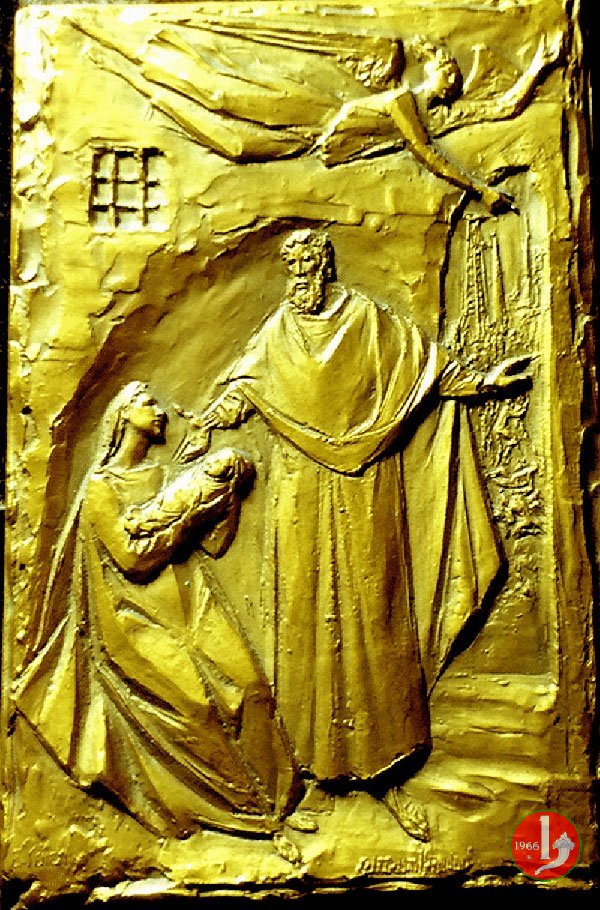 Placchetta Natale 1967 -C74 Obverse: La B. V. Maria seduta verso sx porge il Bambino a San Giuseppe in piedi, in alto Angelo in volo verso dx Reverse: liscio |