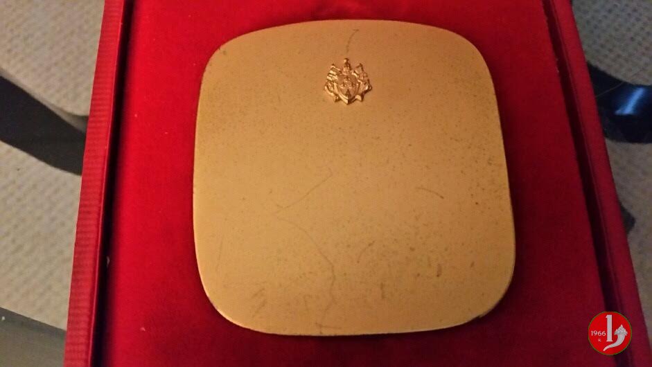 Visita a Firenze per alluvione Natale 1966 -MM213/214 Obverse: ECCE PASTOR QVI DOLOREM CONSOLABITVR = PAVLVS • VI • PONTIFEX • MAXIMVS busto con cappello a sx sotto: BENVENUTI in basso: HODIERNO DIE NATALIS DOMINE Il Papa in piedi di fronte, dietro il Crocefisso di Cimabue e alcuni monumenti Fiorentini |