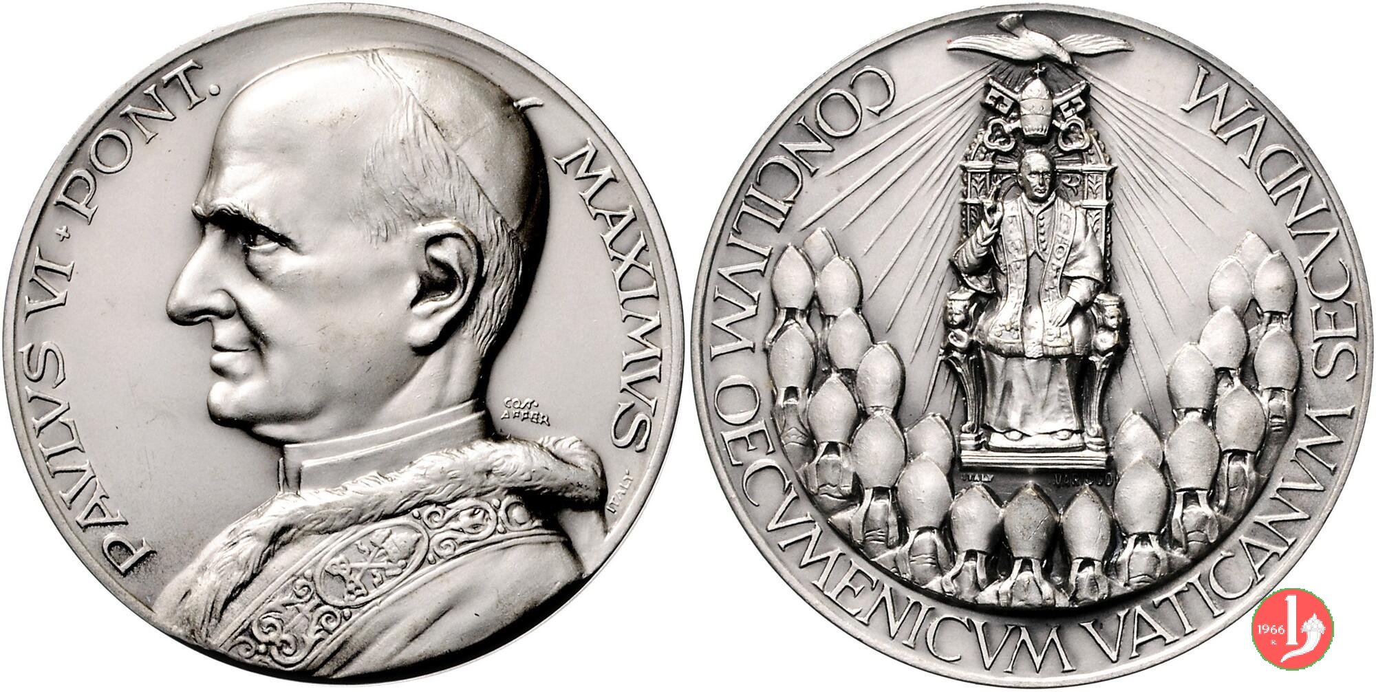 Concilio Ecumenico Vaticano II -MM539var Dritto: PAVLVS • VI • PONTIFEX • MAXIMVS = CONCILIVM • OECVMENICVM • VATICANVM • II busto a sx con mitra, pallio e fanone in basso a dx: Ff Cristo raggiante su nube irraggia il Papa e i Padri Conciliari riuniti, al centro su tavolino libro aperto iscritto: EVAN = GELIA in basso a sx: GIAMPAOLI |