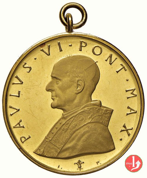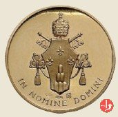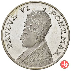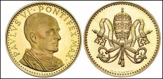 Triregno e chiavi Dritto: PAVLVS VI • PONTIFEX MAX • busto di 3/4 a dx con berretto, veste talare, Croce pettorale e stola sotto: CA G 15 GOLD 900 oppure: SILBER 1000 FEIN CA 40 G. |