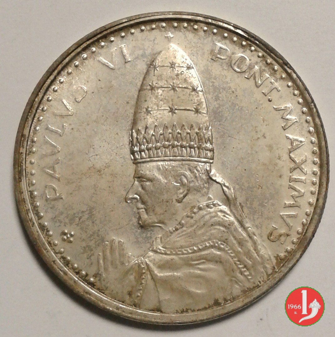 Regina della Pace Dritto: PAVLVS VI + PONT. _ MAXIMVS busto a sx con berretto, mozzetta d'ermellino e stola dietro la spalla: COST = AFFER in basso a dx: ITALY in basso elmo e spada tra steli di rose | |