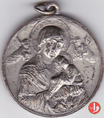 Madonna del Perpetuo Soccorso -MM472 Dritto: _ • PAVLVS • VI • PONTIFEX • MAX • busto a sx con berretto, mozzetta e stola sotto: G. FROSI busto nimbato, velato e coronato della B. V. maria, regge il Bambino Gesú nimbato, tra due Angeli | |