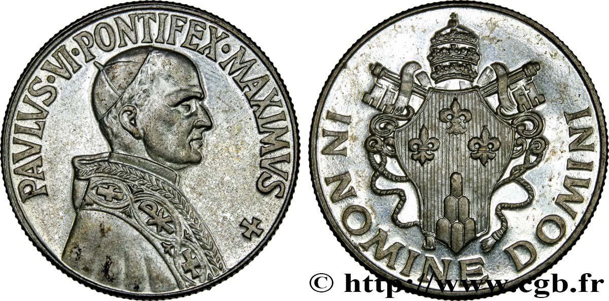 Stemma Papale -MM523/524 Dritto: PAVLVS VI + PONT. _ MAXIMVS busto a sx con berretto, mozzetta d'ermellino e stola dietro la spalla: COST = AFFER in basso a dx: ITALY | |