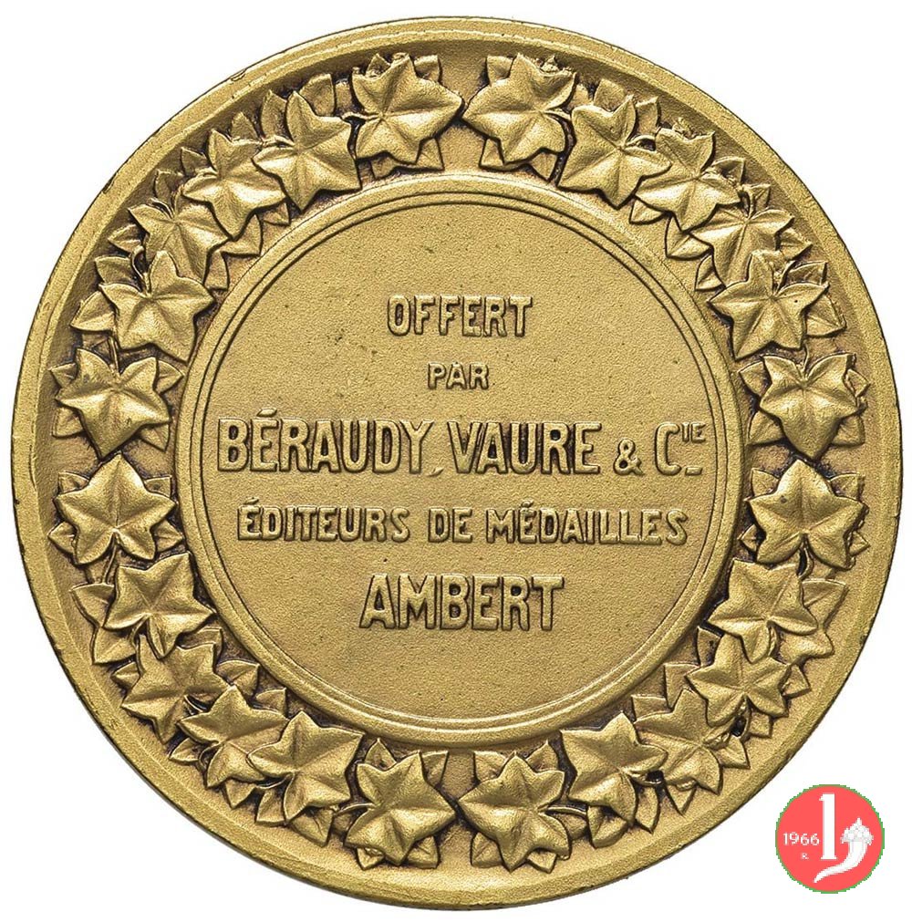 Omaggio della Ditta Béraudy, Vaure & C. Obverse: PAVLVS VI _ PONT • MAX • busto di 3/4 a dx con berretto, abito talare e Croce pettorale (catena) sul taglio spalla: CONTAUX |