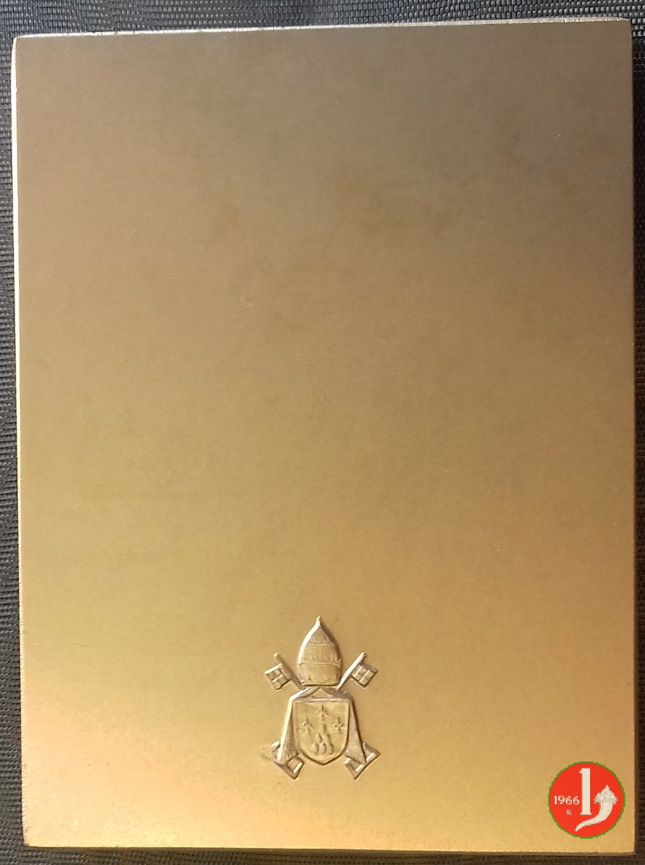 Placchetta per la Pasqua Obverse: Gesú Crocefisso tra i due Apostoli Pietro e Paolo in basso, a dx: E. MANFRINI sotto: PAVLVS VI = PONT. MAX. |