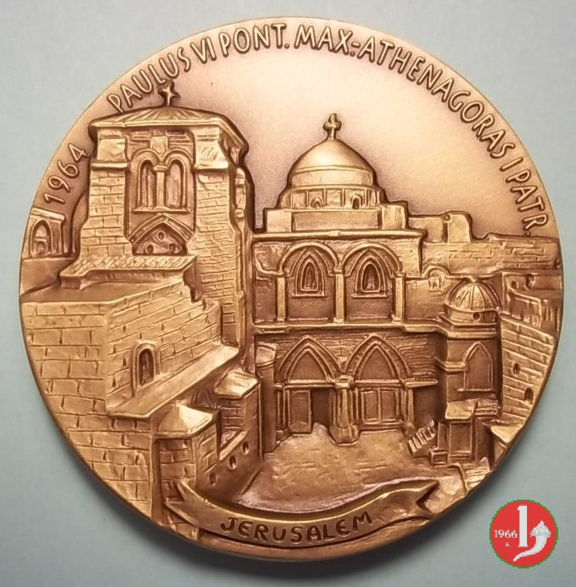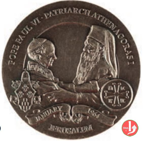 entro cornice circolare interrotta: Colomba in volo a sx su Croce ardente