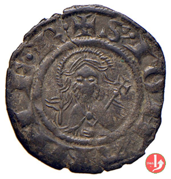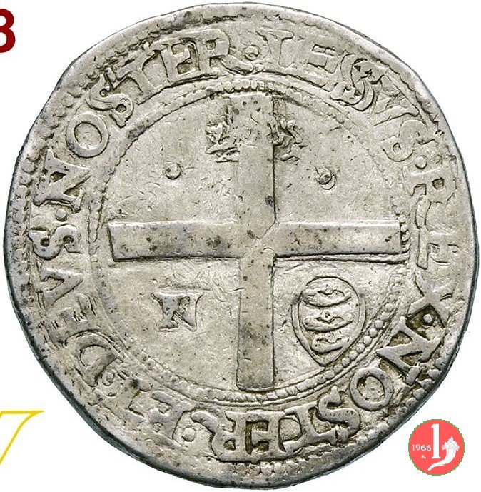 Croce piana con legatura al centro e con corona di spine intorno al braccio superiore. Nel 1° e 2° quarto sono impressi due  • , nel 3° l'iniziale del Signore della Zecca (N), nel 4° vi è