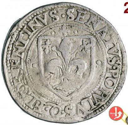 Il giglio fiorentino con i due fiori con i pendenti vicino al gambo,l'incisione è piú fine e i caratteri della legenda sono piú alti.