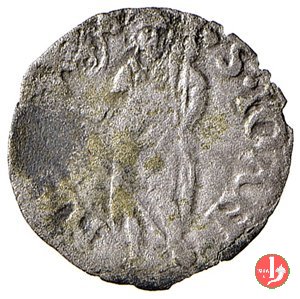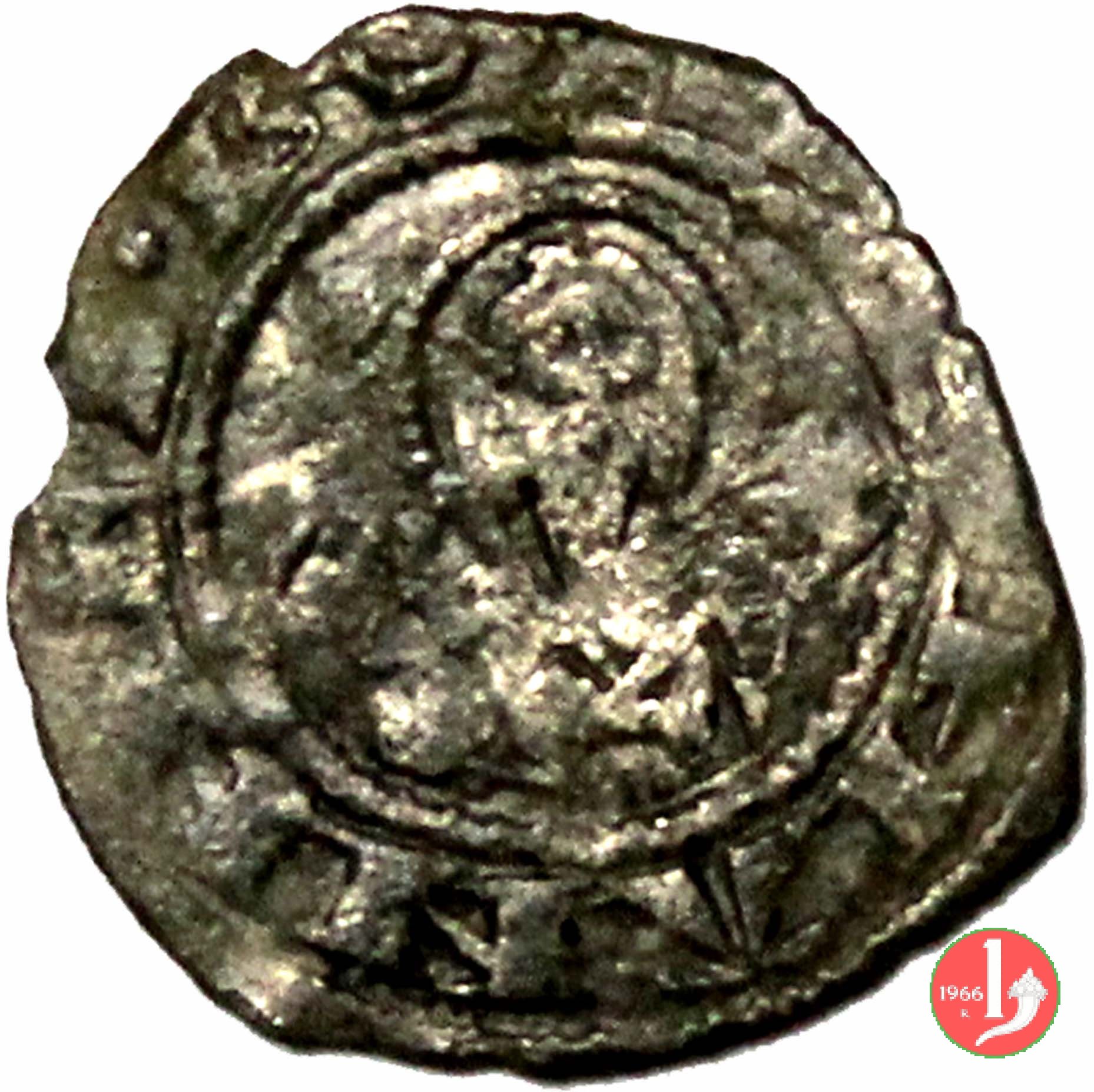 Croce piana con legatura al centro. Nel I e II quarto sono impressi due globetti, nel III l'iniziale del nome del signore della zecca, nel IV il suo segno; cerchio perlato