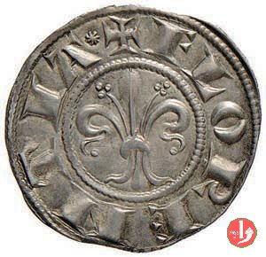 Fiorino piccolo o picciolo I serie (I semestre 1315 - I semestre 1324) Obverse: ![]() FLOR ENTI![]() ![]() Il giglio fiorentino con due fiori piú piccolo; c. p. Il Santo e' rappresentato a mezzo busto ma piú corto e il viso piú stretto e particolareggiato, i capelli sono meno voluminosi e la barba è a punta, con nimbo perlato; ha la destra alzata in atto di benedire e con la sinistra tiene un'asta con croce, appoggiata alla spalla; cerchio perlato. (+) segno di zecchiere | |