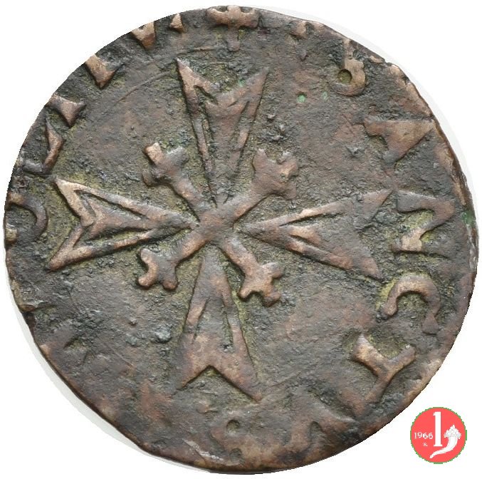 Parpagliola (tipo Savoia) Dritto: •....S CO GAZOL Scudo tipo Savoia entro cornice trilobata avente due globetti agli angoli superiori Croce di San lazzaro con sovrapposta piccola croce mauriziana. | |