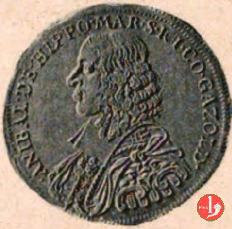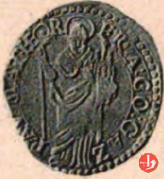 Muraiola (tipo Bologna) Dritto: PAVLVS • MATI • HER • C • GAZ Santo nimbato e mitrato, con pastorale nella mano destra e città nella sinistra. Busto di Pontefice a destra. | |