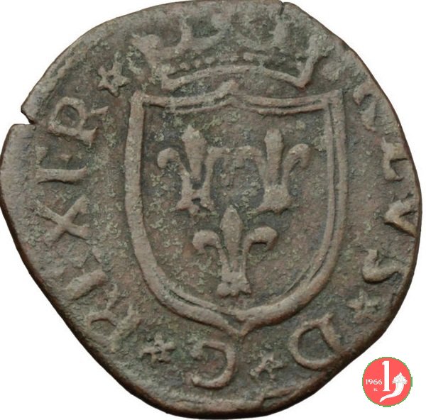 cavallo di Manoppello Dritto: KLUS *D*G*REX FR* ; scudo di Francia coronato Verso: PARDUS*UR*CO*MA ; croce patente ancorata accantonata da quattro rosette | |