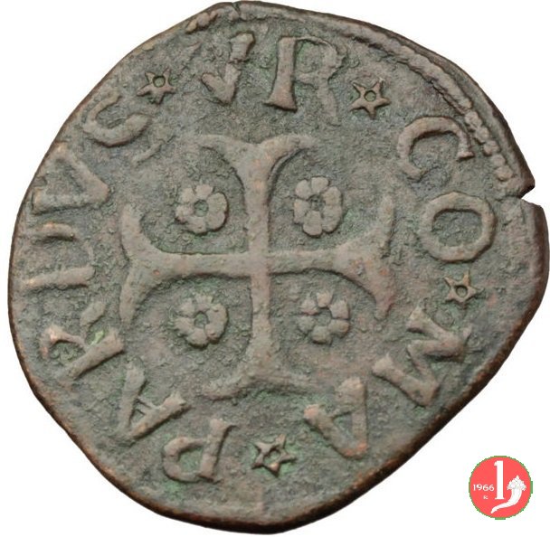Doppio bolognino Dritto: Croce patente con un globo al centro; entro un circolo perlinato. (Stemma aragonese coronato) UB' • THEATINA • • • S • JUS TINUS • | |
